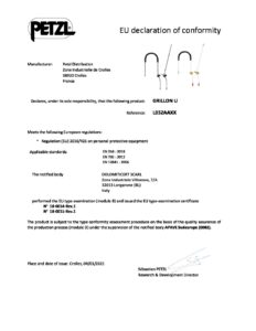 Home / Height / Anchors / Petzl GRILLON L052AA04 Temporary Horizontal Lifeline – 10 meters / Petzl GRILLON L052AA04 Temporary Horizontal Lifeline Declaration of Conformity