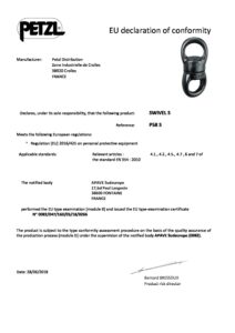 Petzl P58 L Swivel L Ball Bearing Swivel Declaration of Conformity