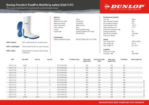 Dunlop CA61131 Purofort FoodPro Multigrip Safety Wellingtons Data Sheet