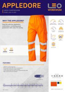 Home / Workwear / High Visibility / Leo Workwear L01 Appledore Class 1 Cargo Overtrousers / Leo Workwear L01 Appledore Class 1 Cargo Overtrousers Data Sheet