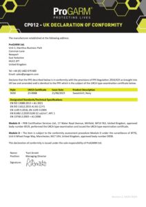 ProGARM 5630 ARC Flame Retardant Sweatshirt Declaration of Conformity