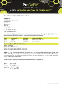 ProGARM 2102 Flame Retardant Boot Socks Declaration of Conformity