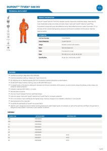 Home / Workwear / Limited Life / DuPont Tyvek 500 HV High Visibility Hooded Coveralls / DuPont Tyvek 500 HV High Visibility Hooded Coveralls Data Sheet