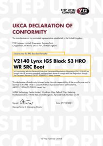 V12 Lynx V2140 Waterproof Black Nubuck Safety Boots Declaration of Conformity
