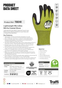 Traffi TG6240 Microdex Nitrile LXT Safety Gloves Data Sheet