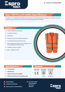 Espro ES71114 Eco High Visibility Zipped Waistcoat Data Sheet