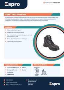 Home / Footwear / Safety Boots / Espro Evolve ES03 S3 Safety Boots / Espro Evolve ES03 S3 Safety Boots Data Sheet