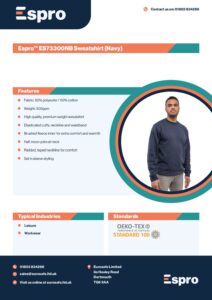 Espro ES73300NB Navy Blue Sweatshirt Data Sheet