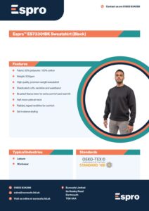 Espro ES73301BK Black Sweatshirt Data Sheet