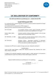 DuPont™ Tyvek® 200 Easysafe Hooded Coveralls Declaration of Conformity