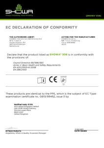 Home / Hand / General Handling / Showa 306 Latex Coated Grip Gloves / Showa 306 Latex Coated Grip Gloves Declaration of Conformity
