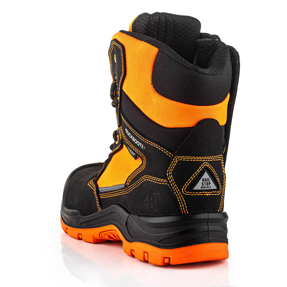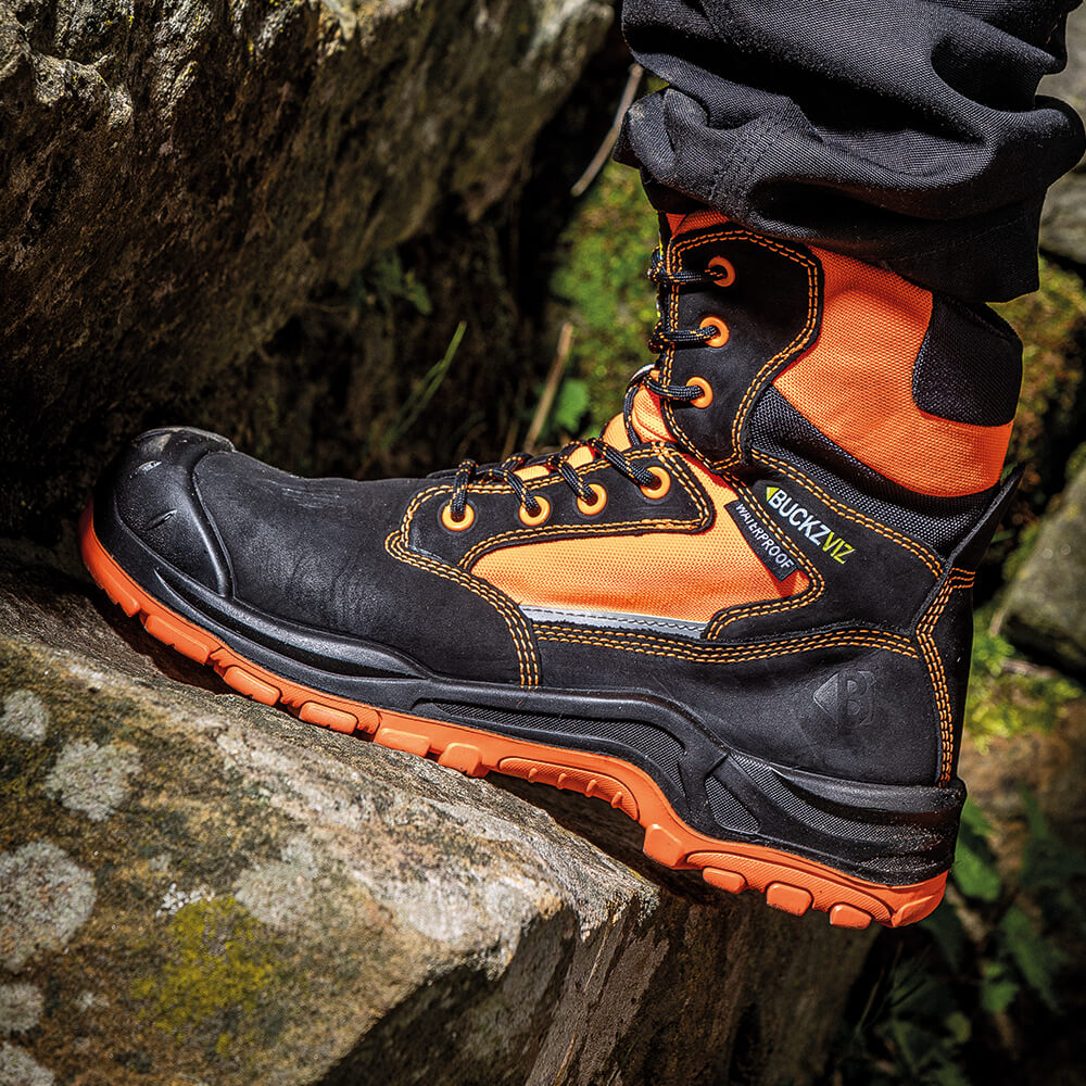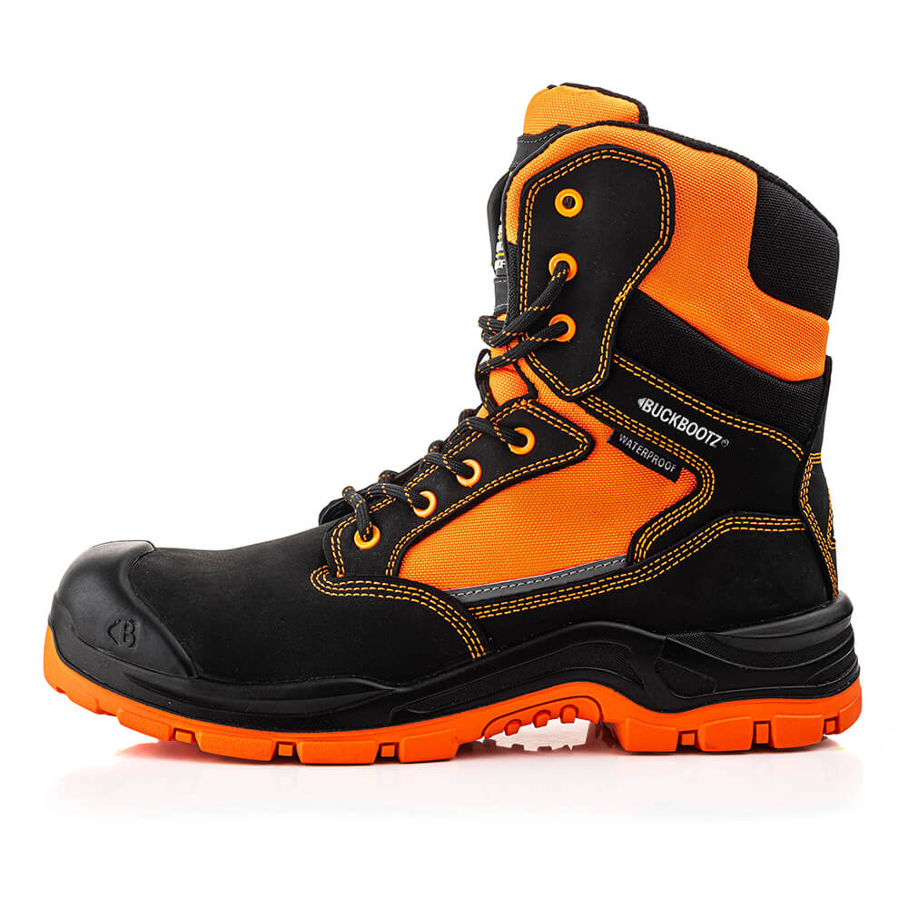 Buckbootz BVIZ1BKOR Buckzviz High Leg Lace/Zip Safety Boots are 100% metal free, high performance work boots. Tough, durable, stylish and comfortable to wear with a range of protective features. Tested and certified to EN ISO 20345:2011 European safety standards.