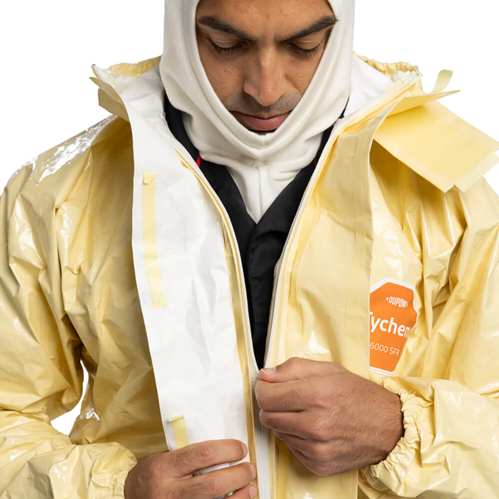 DuPont™ Tychem® 6000 SFR Hooded Coveralls combine chemical protection with limited protection against flame spread. Tychem® 6000 SFR disposable garments provide reliable protection against a wide range of toxic chemicals, particulates and biological hazards. Suitable for a variety of industrial applications, including the energy industry, chemical processing, emergency services, hazmat teams and fire brigades.